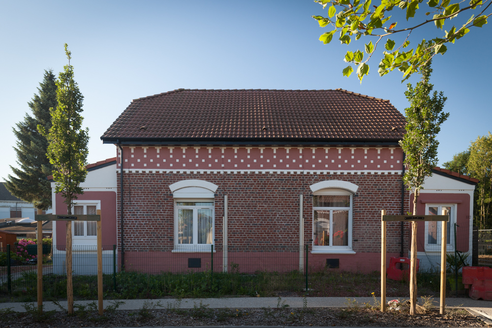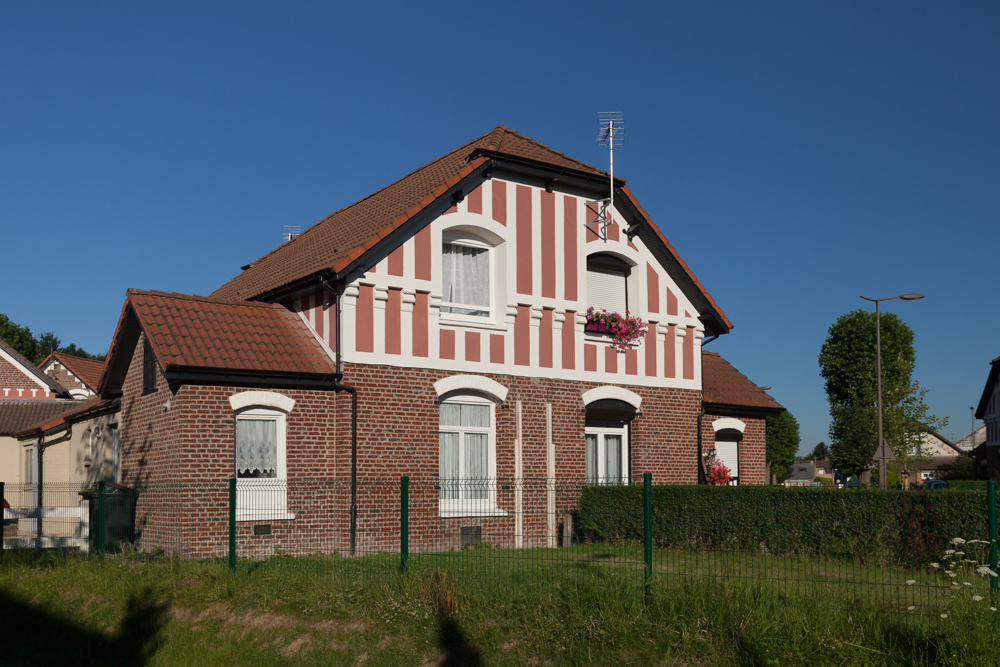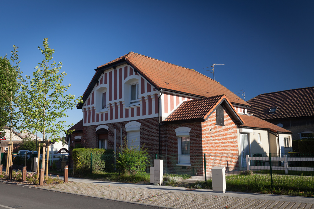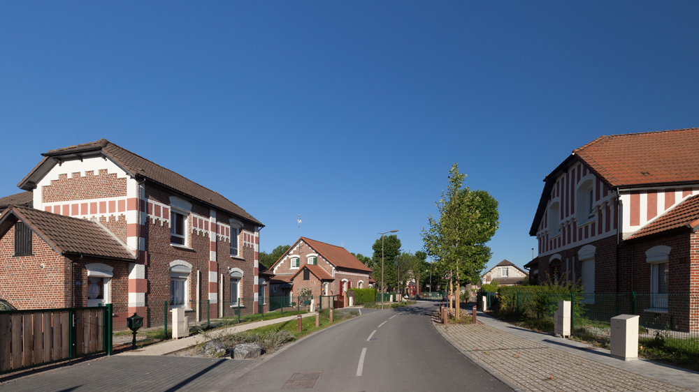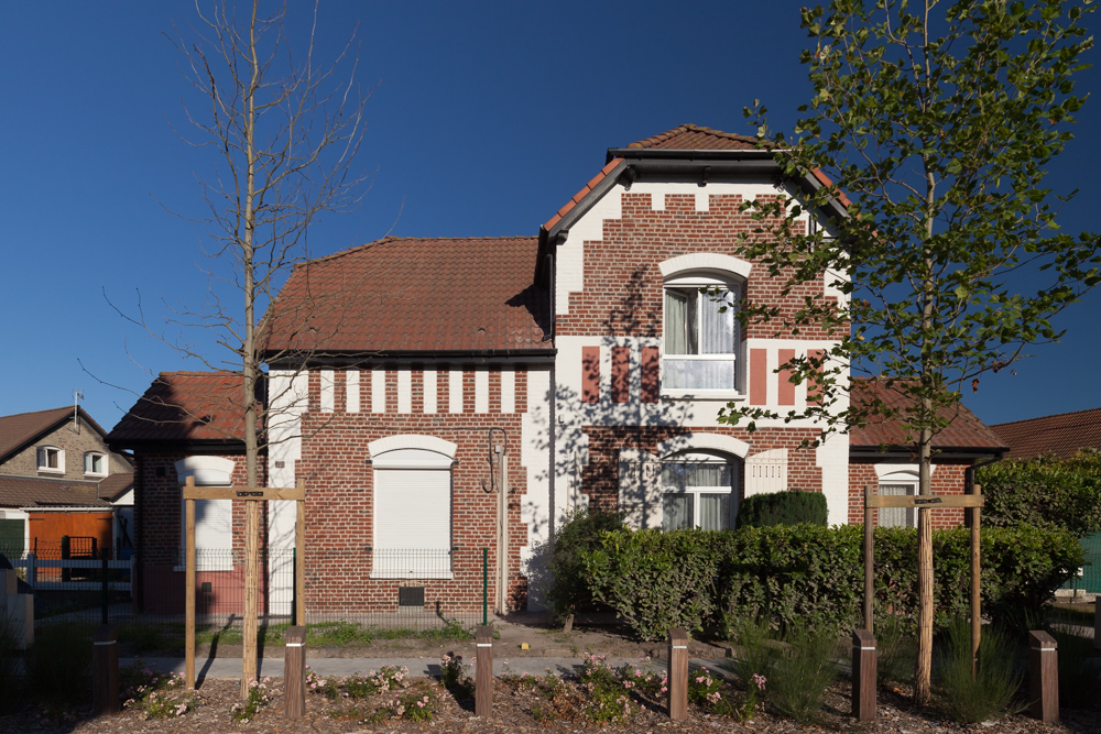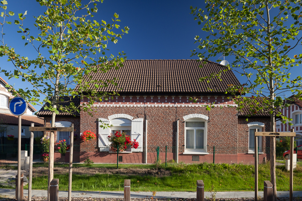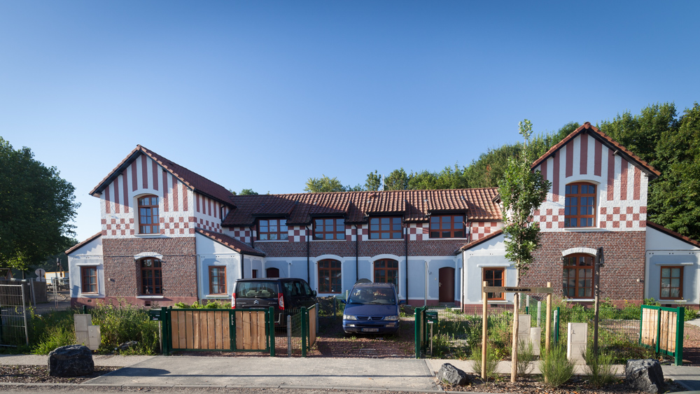 Cité du Nord labellisée « remarquable », après quelques mois de travaux cette cité a été restaurée selon les normes du début du XXe siècle. les façades ont été traitées au badigeon de couleur ocre, rouge ou blanc.