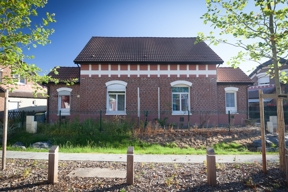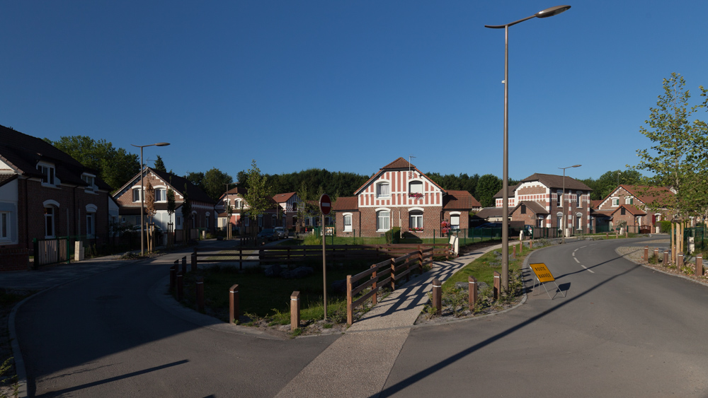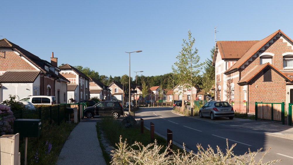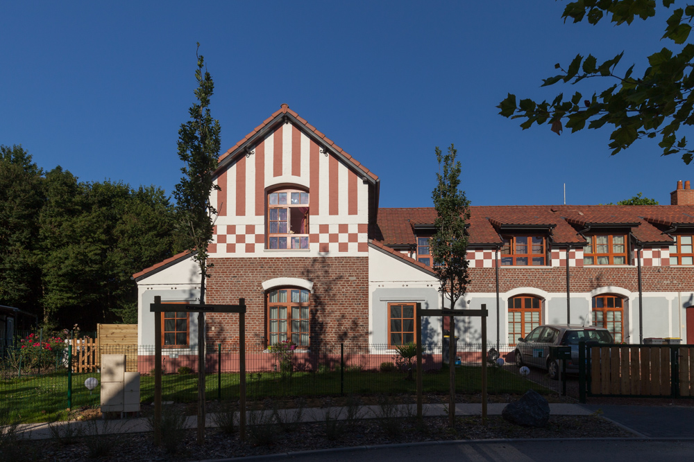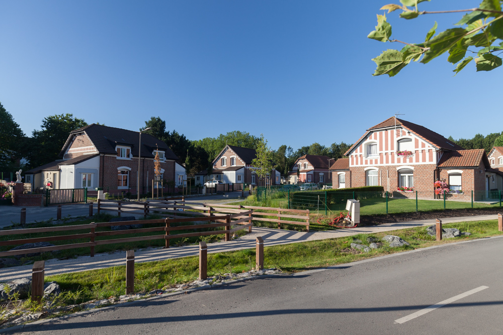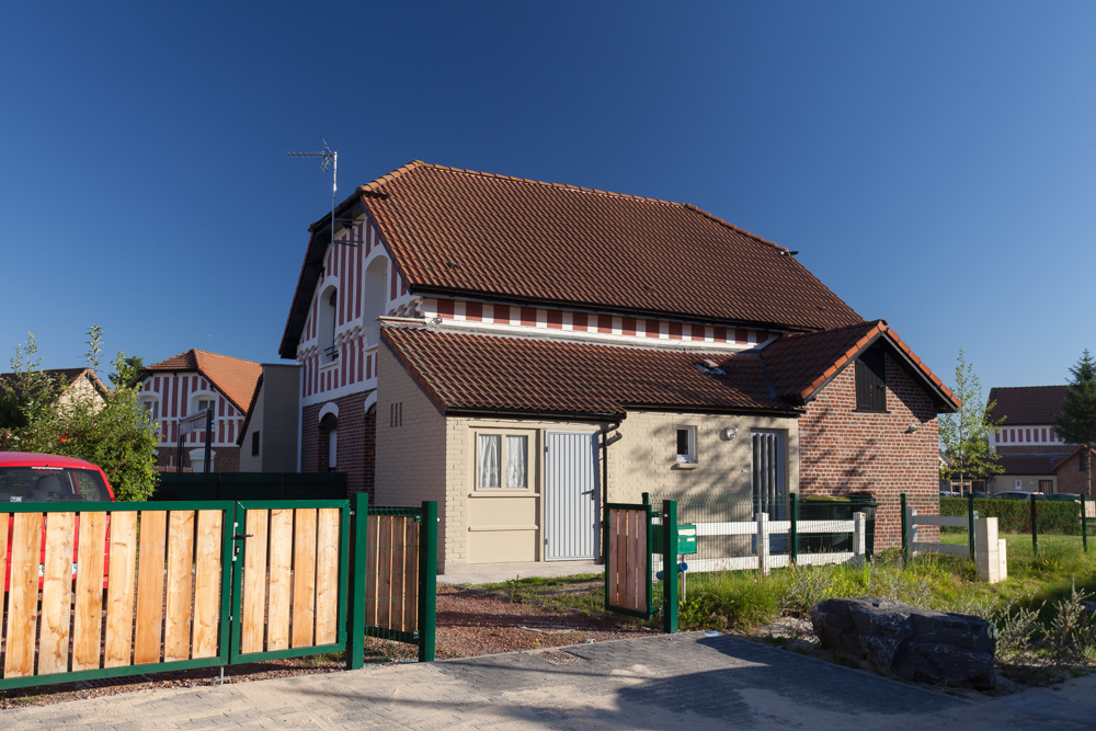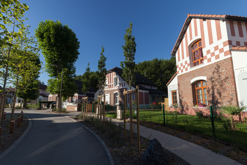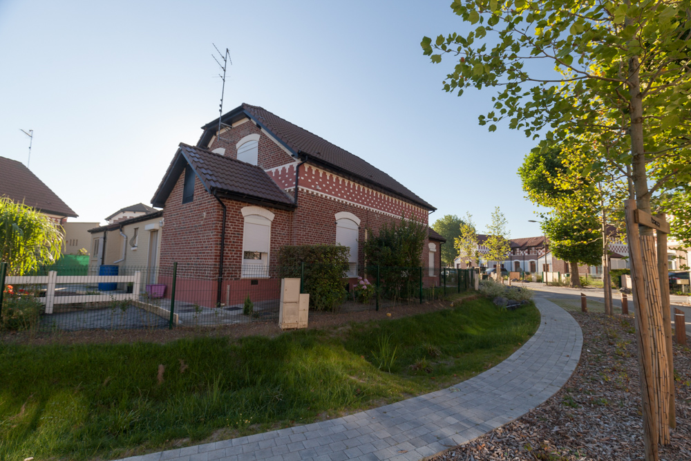 Cité du Nord labellisée « remarquable », après quelques mois de travaux cette cité a été restaurée selon les normes du début du XXe siècle. les façades ont été traitées au badigeon de couleur ocre, rouge ou blanc.